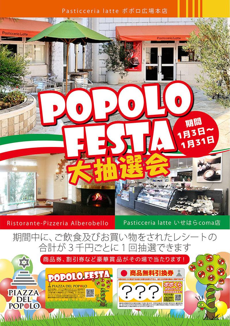 いつもポポロ広場をご利用いただきありがとうございます。日頃の感謝の気持ちを込めまして、1月3日より、「ポポロフェスタ」を開催しています!
